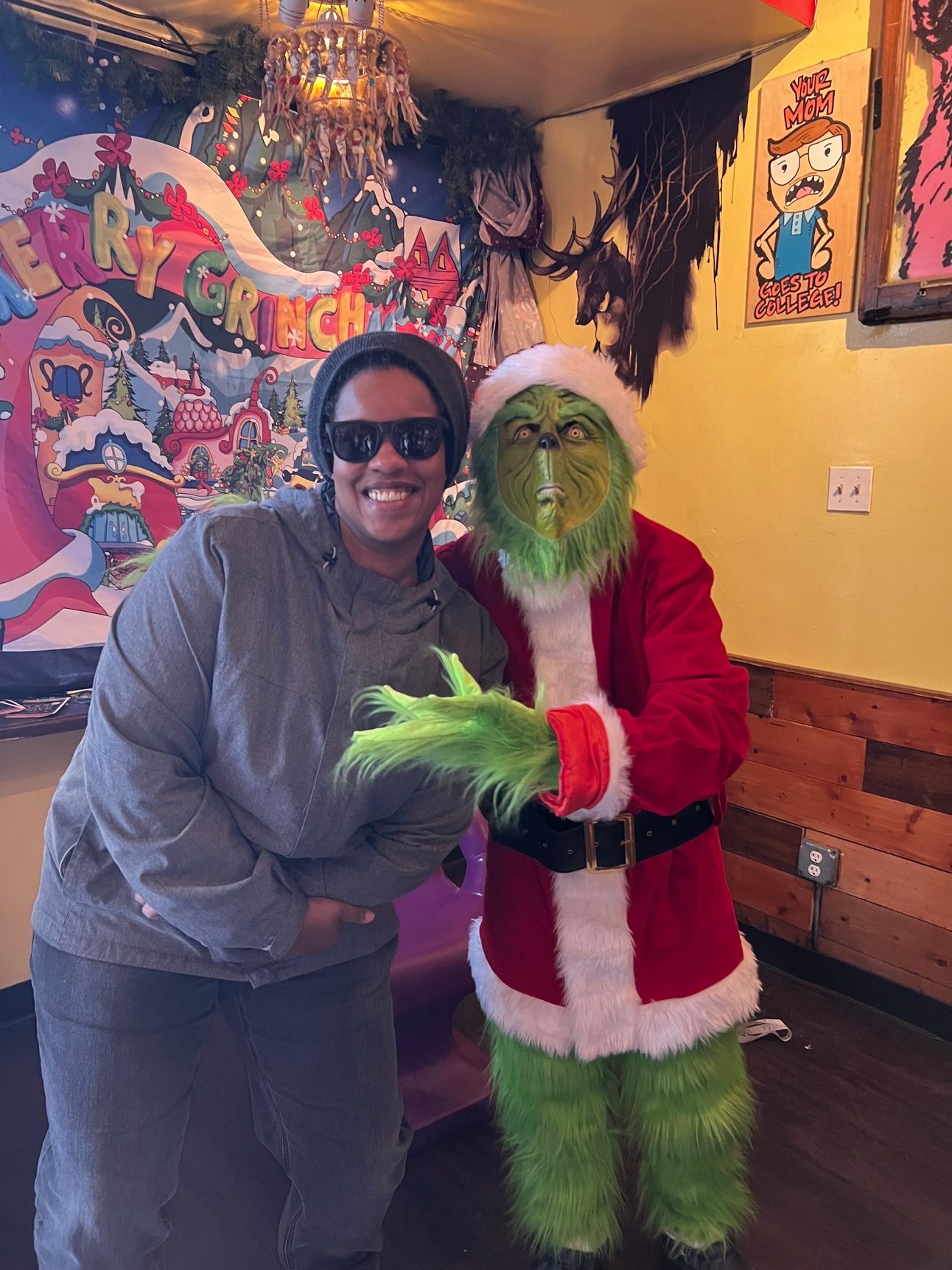 Psalm One posing with The Grinch in Chicago, December 2024.