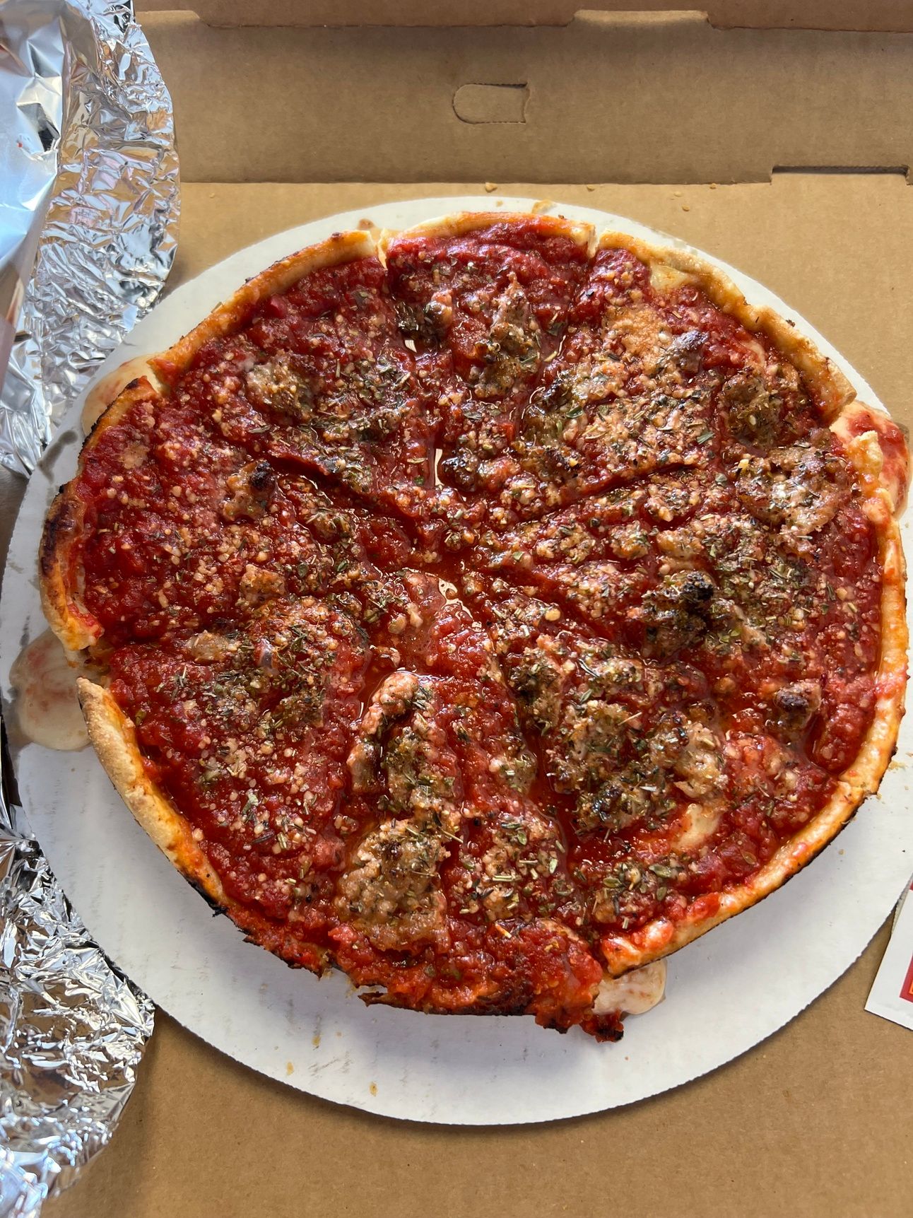 Deep Dish sausage pizza from Lynn’s Chicago Pizza in the South Suburbs.
