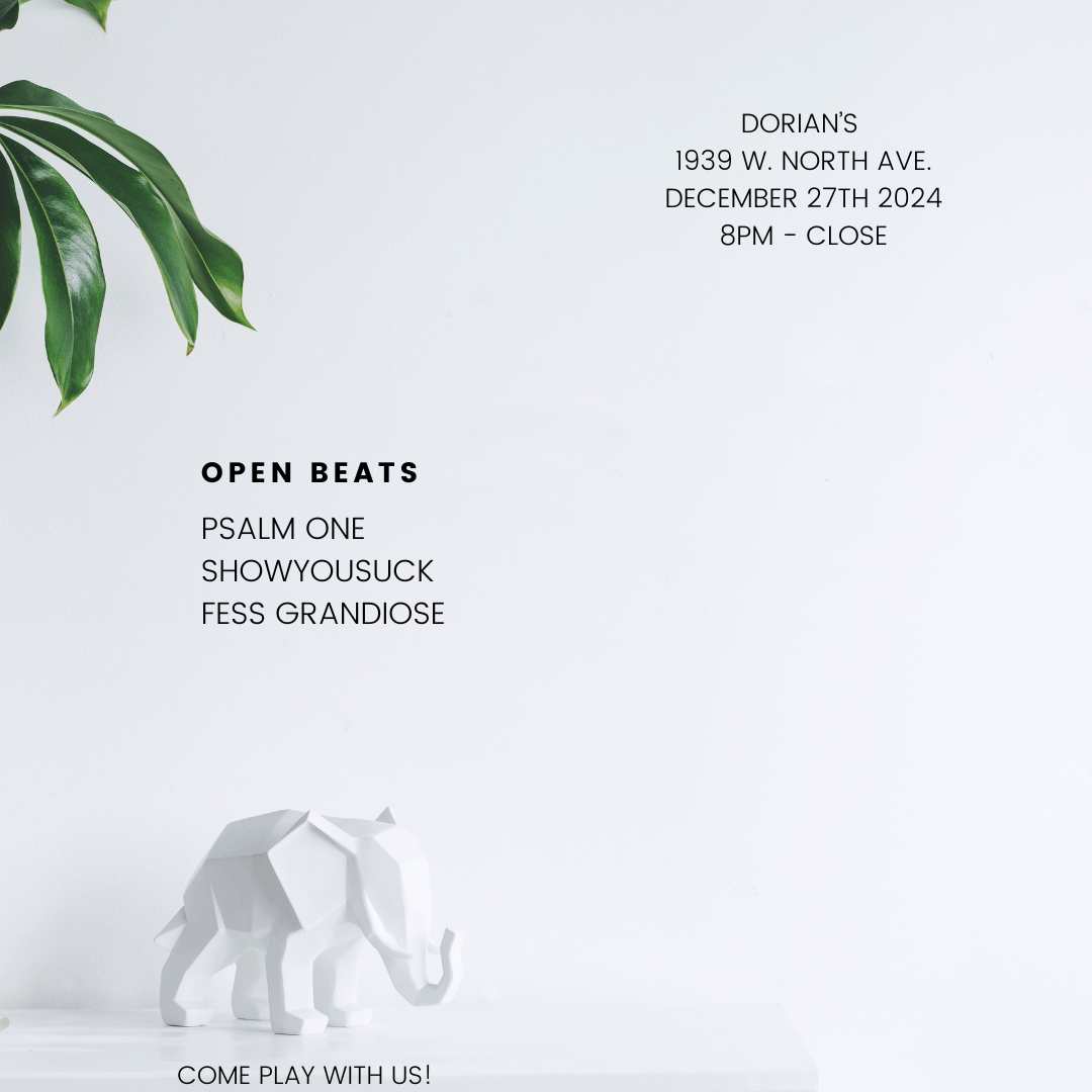 I’ll be at Open Beats in Chicago on December 27th playing new tunes with Fess Grandiose. NEW TUNES. Get tickets HERE.
