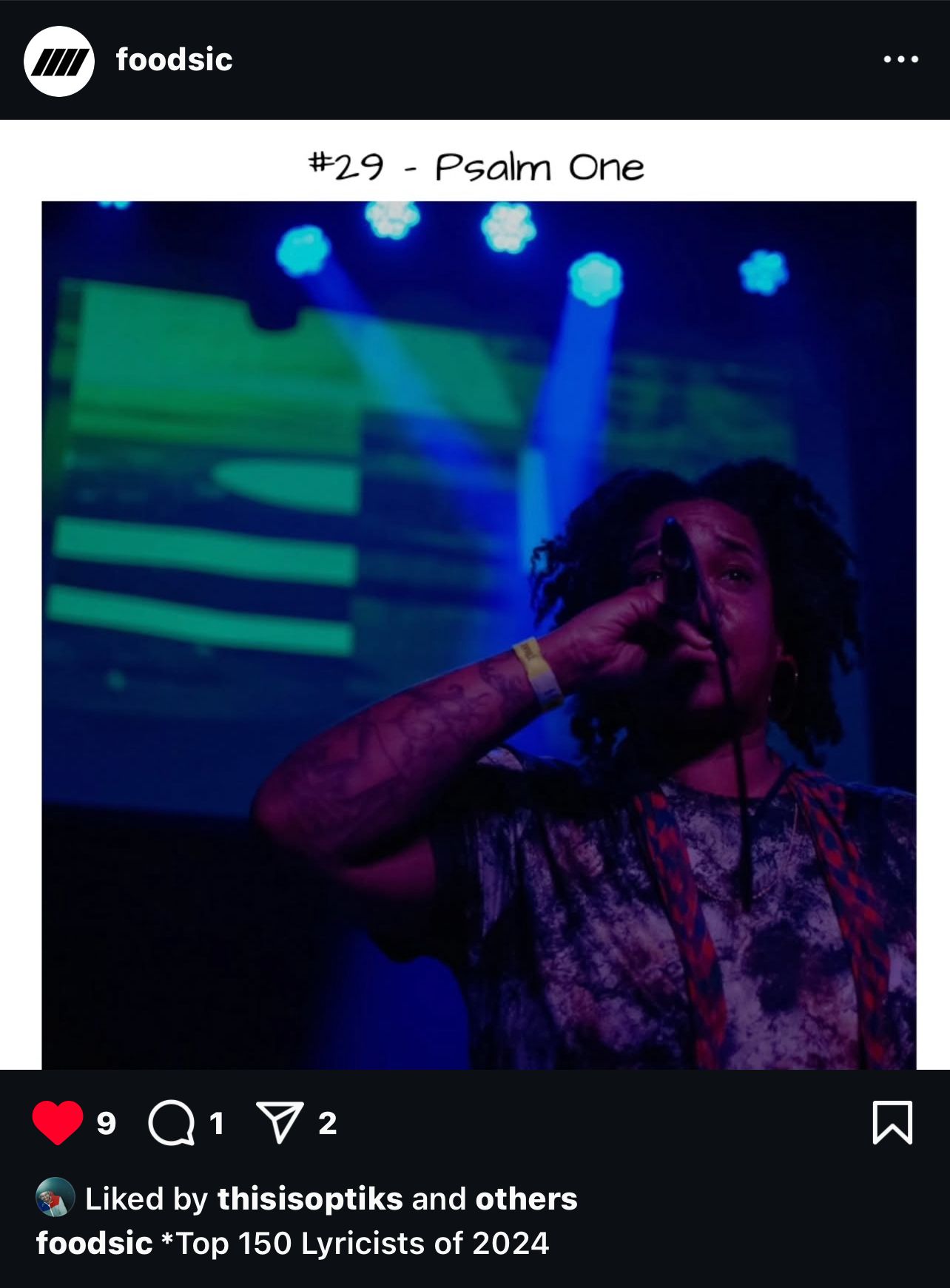 So, the Foodsic IG is a humble page dedicated to “promoting the best & challenging the rest.” They’ve shown a lot of love to me, Optiks + our latest album. They make tons of finely curated Spotify playlists for your listening pleasures, as well. They said I’m the 29th best so yeah, that too! I got a tickle out of this list. Love to Foodsic, foreal <3.