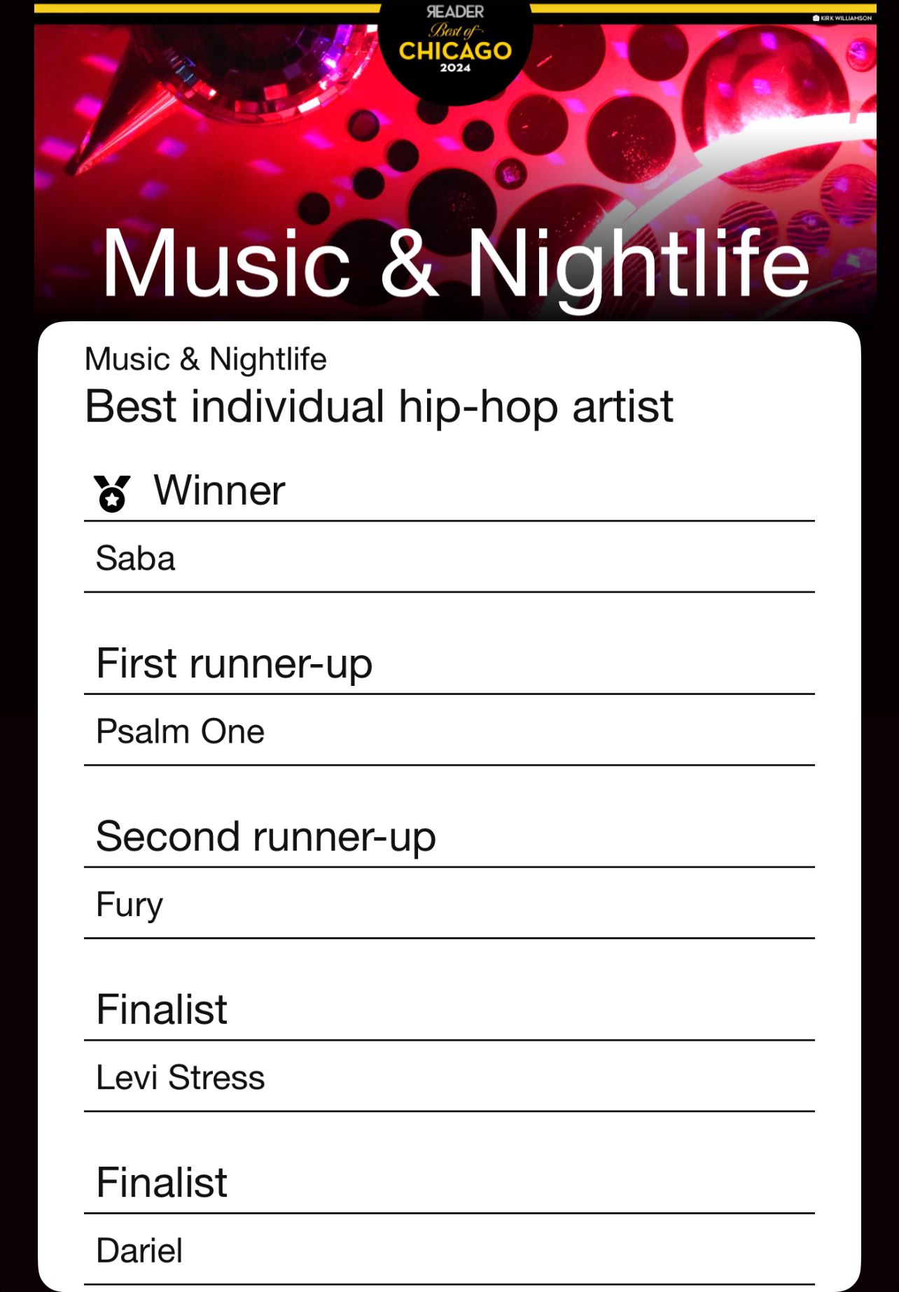 In 2024 I was the second best rapper in Chicago, apparently. I’ll take it!